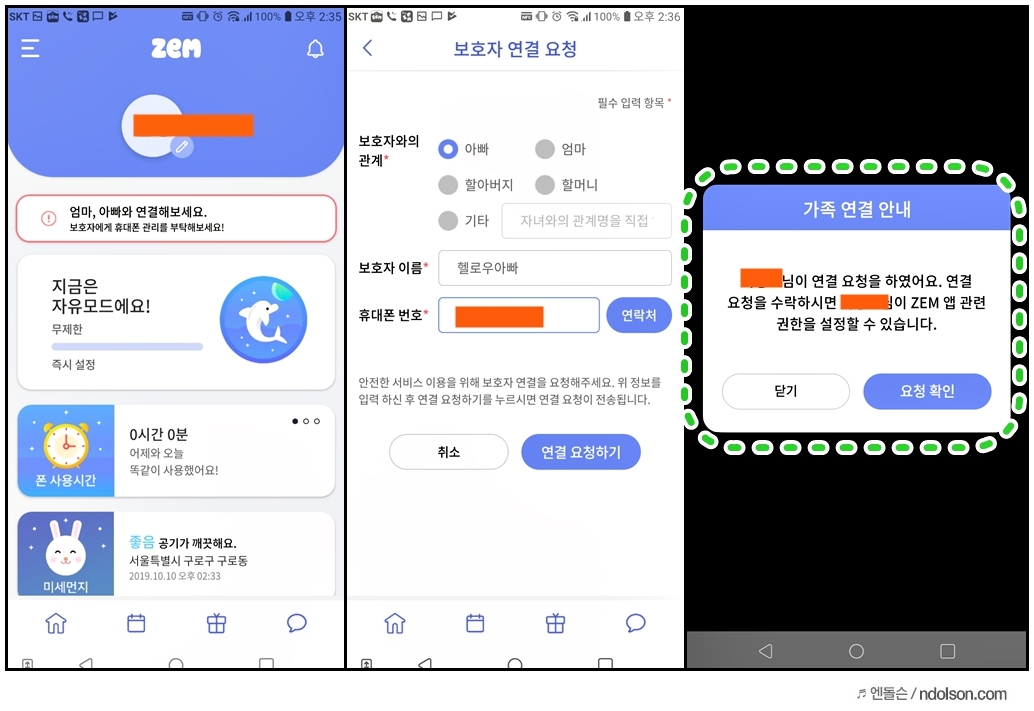 LG X2 잼스마트폰의 ZEM앱은 부모용, 자녀용이 있으며 설치해서 자녀 연결을 해야 합니다.