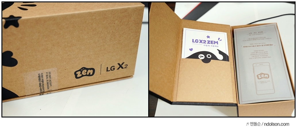 LG X2 잼스마트폰를 개봉하여 봅시다. 재미있는 캐릭터가 눈에 제일 먼저 들어옵니다.