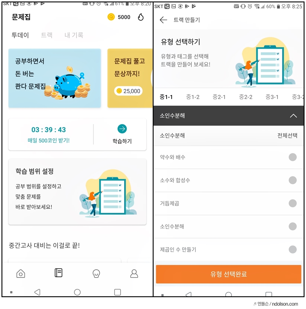 문제집을 풀면 공부도 하면서 코인도 모을 수 있습니다. 또 시험을 대비해서 나만의 유형을 만들어 단원별 공부도 가능한데, 트랙 만들기를 하면 됩니다.