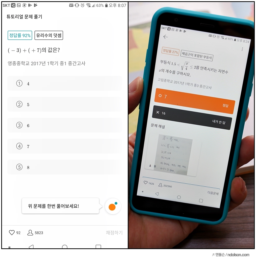 모르는 문제는 퀀다(QANDA) 수학 5초 풀이 검색을 하면 명문대 선생님께 직접 질문하고 취약한 부분의 문제집을 풀어 볼 수 있는 좋은 앱입니다. 세상이 바뀌여서 이제는 카메라로 모르는 수학 문제를 찍으면 되네요.