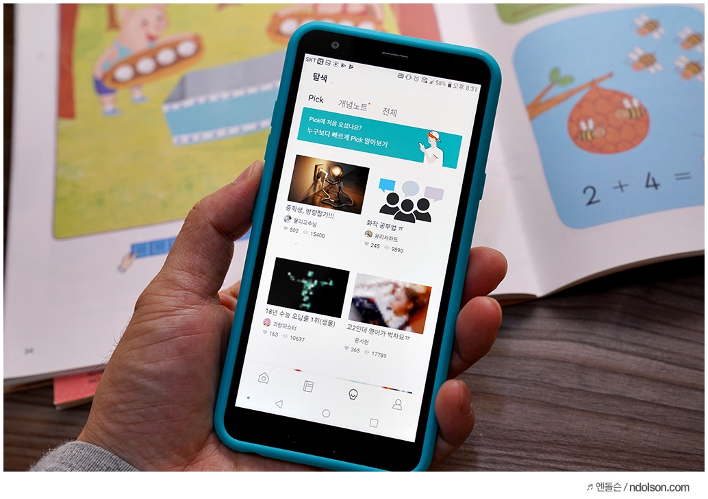 수학 문제를 스마트폰을 보면서 공부하면 되는 데, 누르면 바로 풀이 방법에 대한 것이 나와서 마치 게임 같습니다.