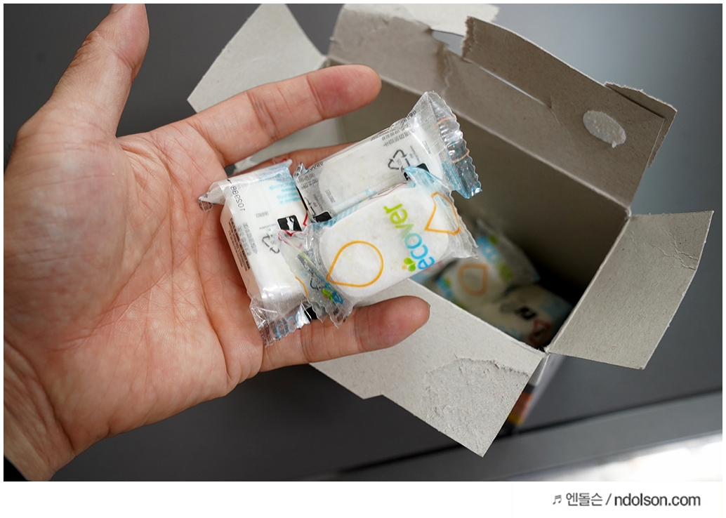 작은 비누 같이 생겼는데요. 올인원이라 세제와 린스가 같이 있습니다. 장점은 편하다. 단점은 상대적으로 비싸다는 것입니다.