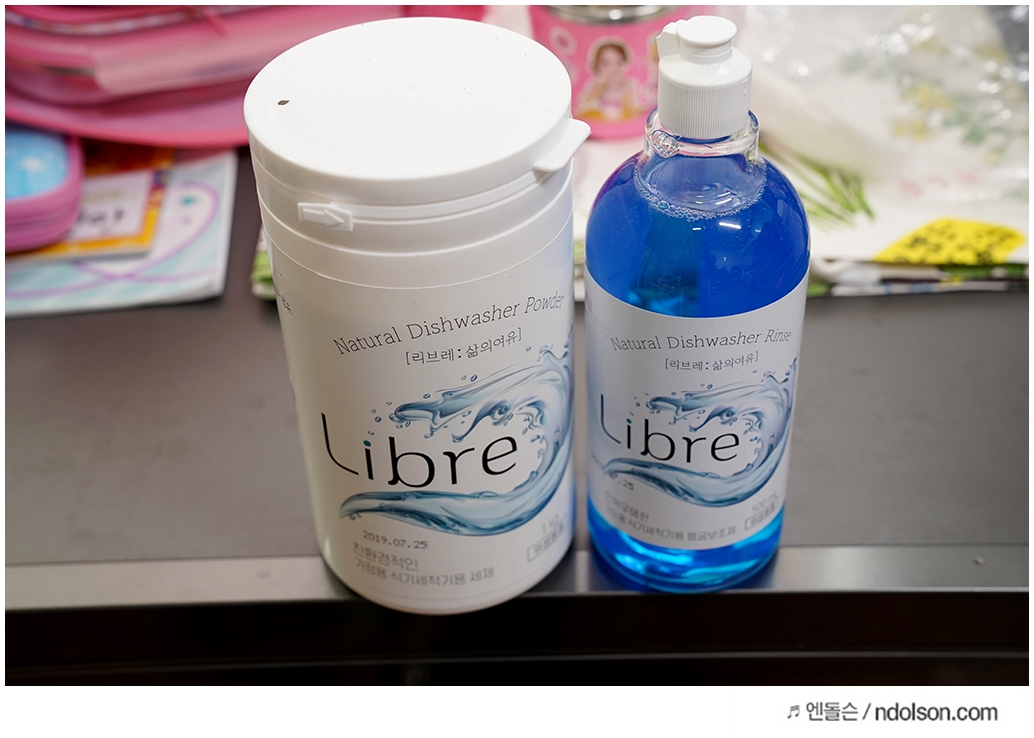 식기세척기에 용량에 맞게 세제와 린스를 넣으라고 나옵니다. 친환경적인 헹굼제라고 하는데요. 장점은 저렴한 가격이라는 점과 단점은 액체/고체 따로 넣어야 하는 불편함이 있습니다.