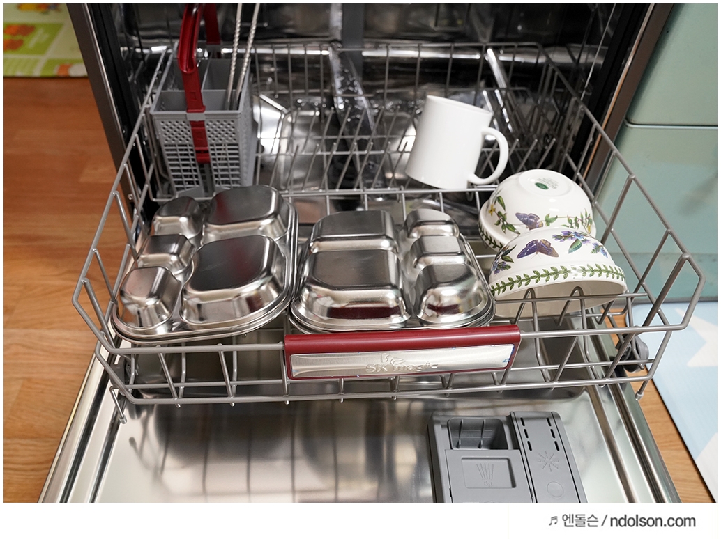 오리 고기 먹은 기름때라던지, 딸아이의 식판도 살균 건조되어 깨끗하게 되었습니다. 대량의 설거지를 넣어도 간편히 해결되니 가장 좋습니다.
