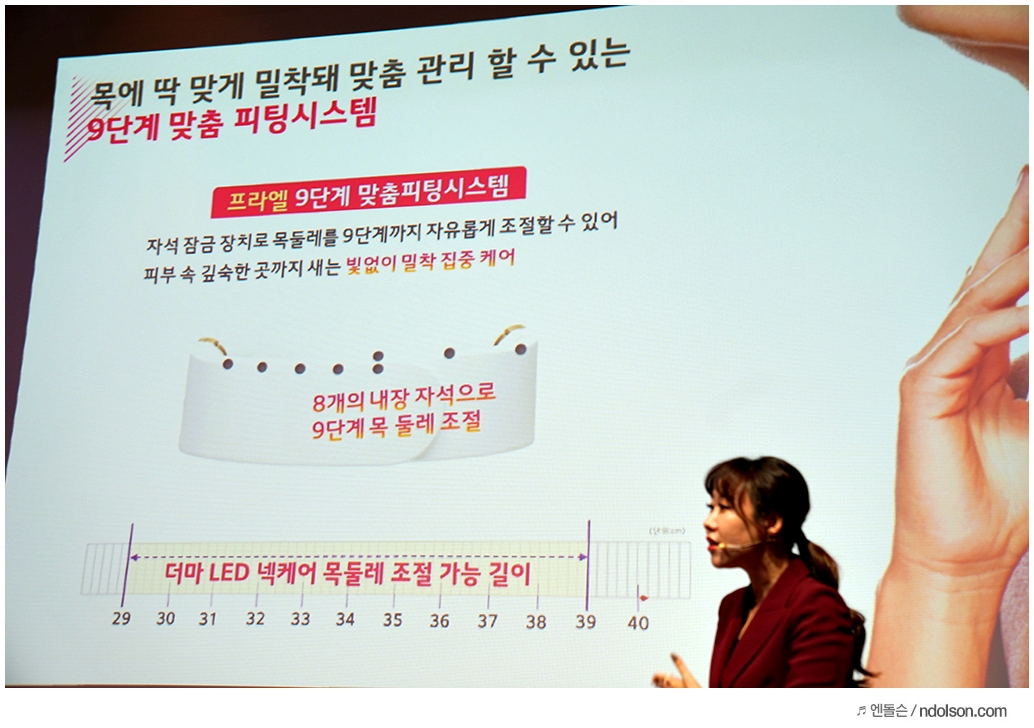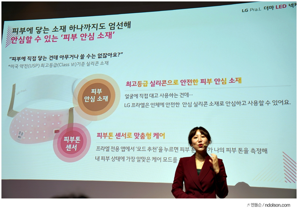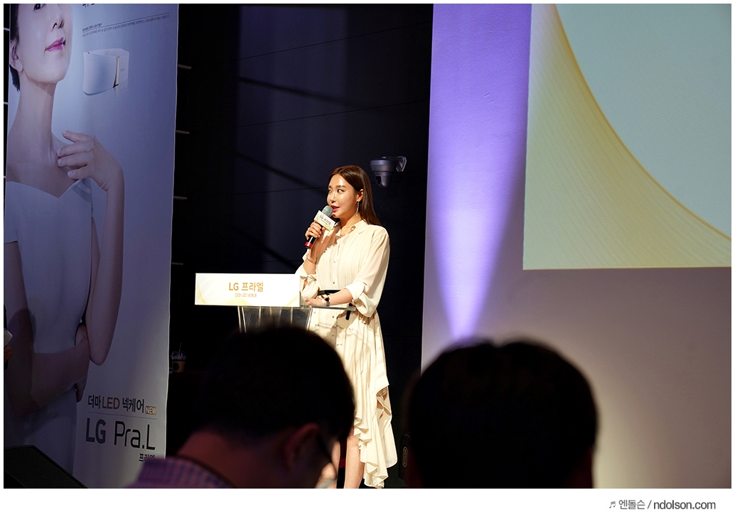 이번 LG Pra.L 신제품 발표에는 쇼호스트로 활동하고 있는 나수진님이 사회를 맡았는데요. 30대 대표로 미리 사용해본 LG 프라엘 더마 LED 넥케어 이야기도 같이 해주셨습니다.