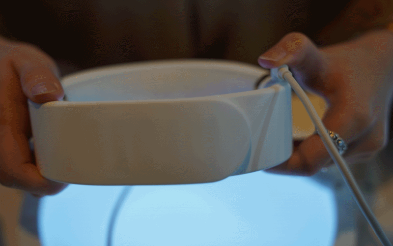 목에 걸고 기다리면 LED 빛의 파장을 이용하여 목 부위 피부 탄력과 수분 증가에 도움을 주는 기능을 하게 됩니다.