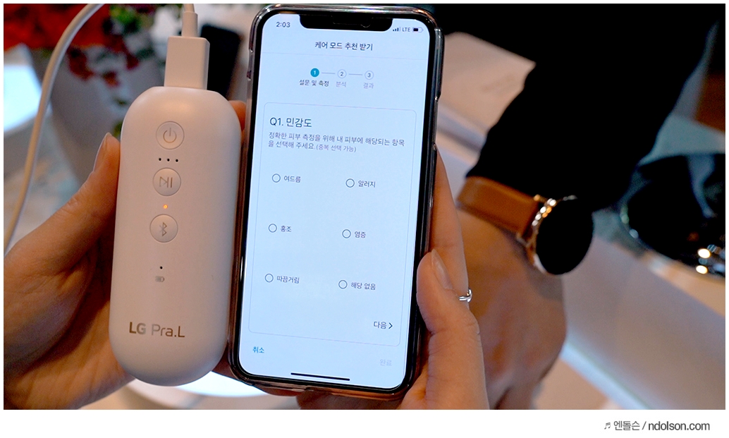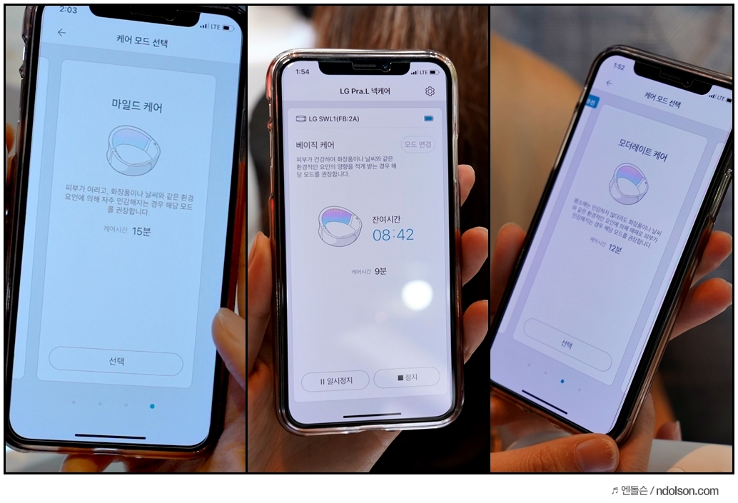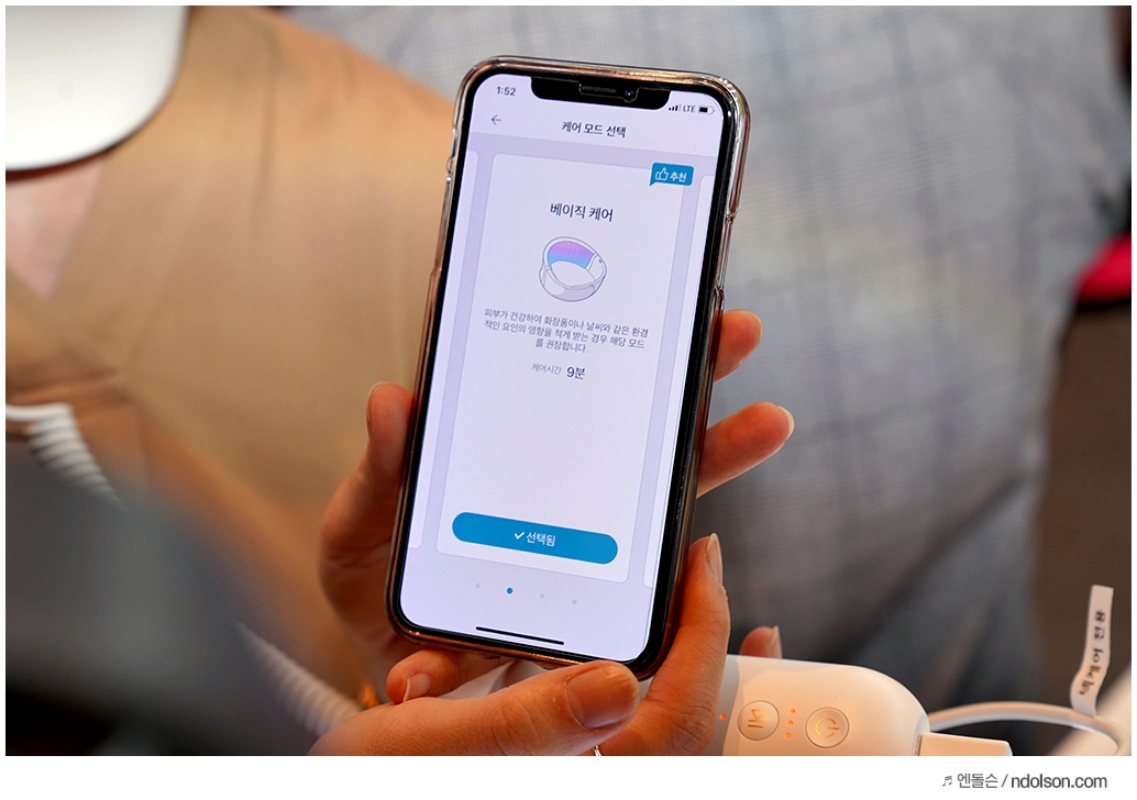 설문과 측정을 통해서 추천을 받는 데, 간단히 설문을 선택하면 자신에게 딱 맞는 케어 모드가 설정됩니다.