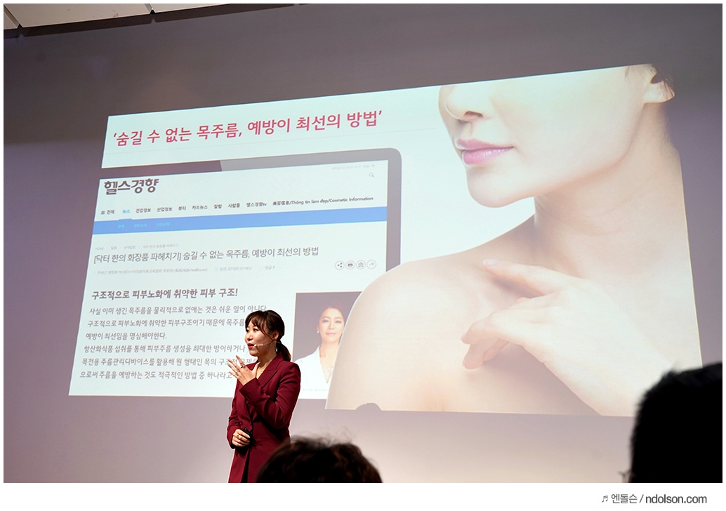 이번 행사에는 강현영 피부과 전문의도 참석하셔서 목주름을 만들게 되는 원인과 관리 팁 등을 설명해주셨는데요. 확실히 전문가의 강연을 들으니 더욱 목 관리에 관심이 생기게 된 것 같습니다.
