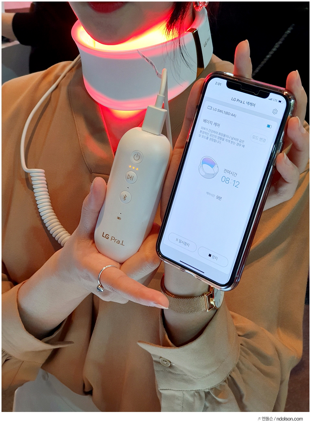 특히 여성분들이 관심이 많았는데요. 직접 LG 프라엘 더마 LED 넥케어를 써보고 체험해보고 있습니다. 백문이 불여일견이라고 써본 후 이야기해보는 게 좋겠죠.