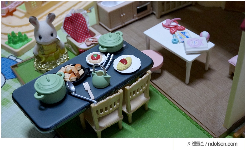 딸아이가 좋아하는 실바니안 장난감으로 아이폰11 인덕션을 설치 해보았습니다. 정말이지~ 냄비가 금방이라도 끓어 넘칠 것 같은 비주얼입니다.