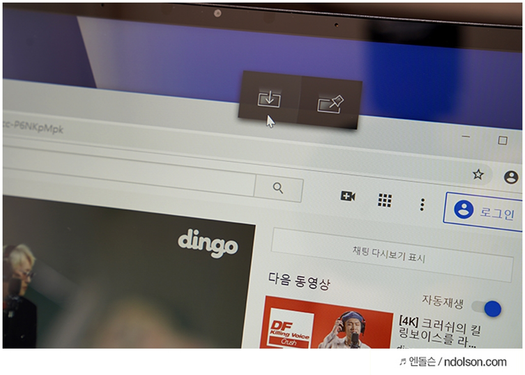 트랙패드에 동영상을 재생하기 위해서 유튜브 재생 후, 브라우저를 마우스로 드래그하면, 위와 같이 화면이 나옵니다. 끌어서 넣기, 고정하기 메뉴로 쉽게 트랙패드 화면으로 표시할 수 있습니다.