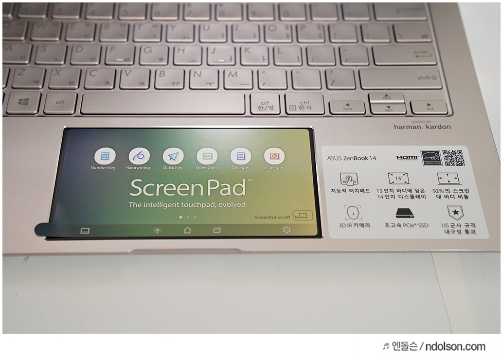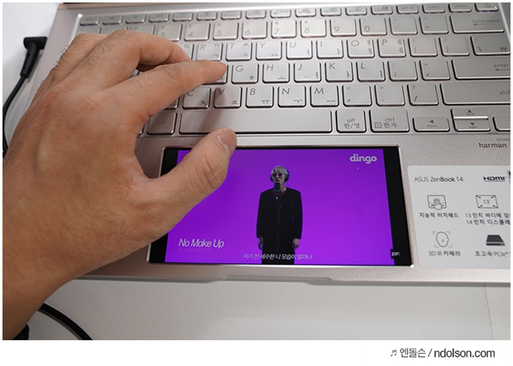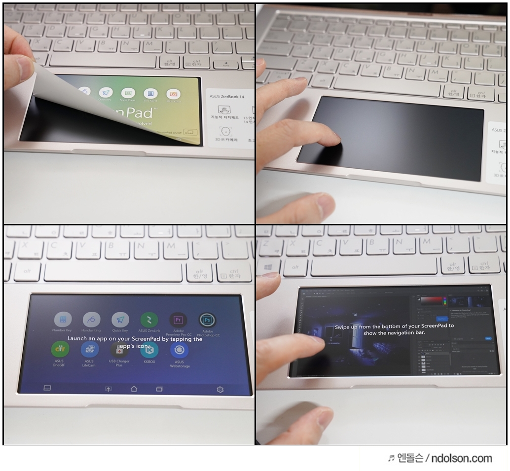 뉴 젠북14 노트북을 보자마자 제일 신기한 것이 바로 트랙패드가 터치화면이라는 것입니다. 동영상 재생은 물론 모니터 화면이고 터치도 된다는 것입니다. 처음 구동 시 가이드 매뉴얼을 따라서 해보면 쉽게 사용법을 배울 수 있습니다.