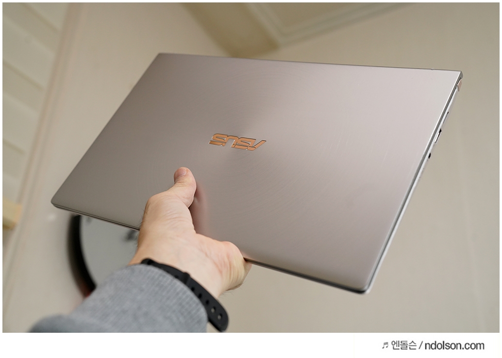 New 젠북14는 손으로 들 때 무게감이 정말 가벼웠습니다. 또한 사이즈가 A4용지만 해서 가방에 넣고 들고 다니기 좋은 휴대성을 보여주었습니다. 회사 출퇴근, 외근용 노트북으로 성능이 좋은 인텔 i7-1051U 프로세스 탑재와 콤팩트한 사이즈라면 충분합니다.