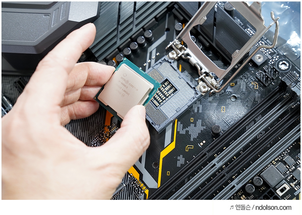 이번 9세대 i9-9900KS CPU를 조립하면서 권장사항은 Z390메인보드인 ASUS TUF Z390-PLUS GAMING 를 사용해보았습니다. 컴퓨터 조립하면서 개인적으로 이전에도 에이수스 TUF 시리즈가 튼튼하고 강인한 내구성면이 있어서 선택하였는 데, 좋았습니다.
