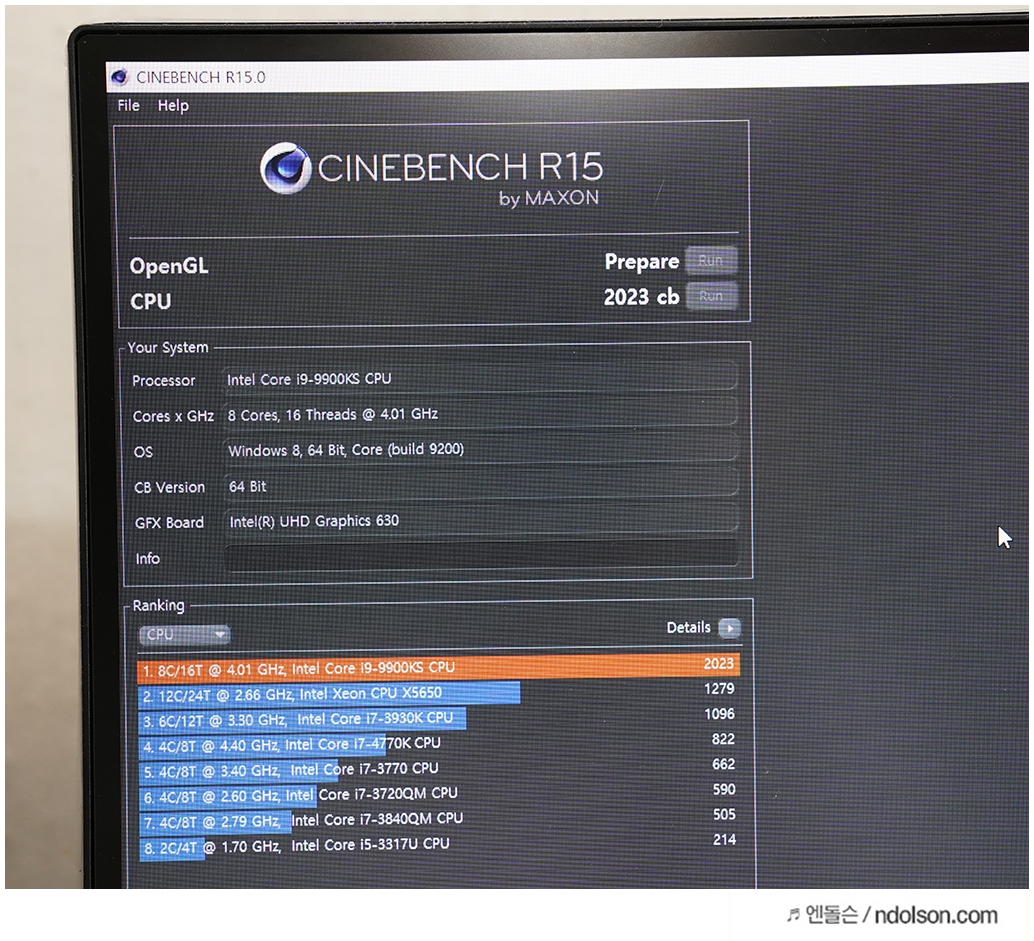인텔 i9-9900KS의 벤치마크 점수는 2023cb 점수가 기록되었습니다. 2070점 이상은 나온다고 보시면 됩니다.