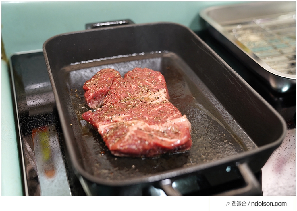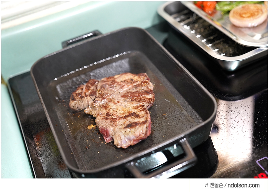인덕션은 화력이 약하다고요? 절대 그렇지 않은 것 같습니다. 집에서 스테이크 구워 먹기를 좋아하는 데, 이번에는 무쇠 주물팬으로 제대로 된 스테이크 굽기를 해보았습니다.