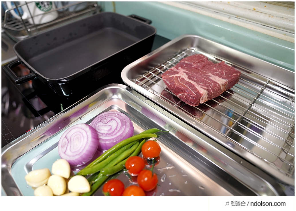 퇴근 언제하냐면서 금요일 저녁에 스테이크를 해준다면서 준비하면서 사진을 찍어 두었더라고요. 요즘 요리를 이것저것 맛있는 걸 많이 해주는 게 얼마 전에 LG DIOS 인덕션으로 바꾼 보람이 있네요.