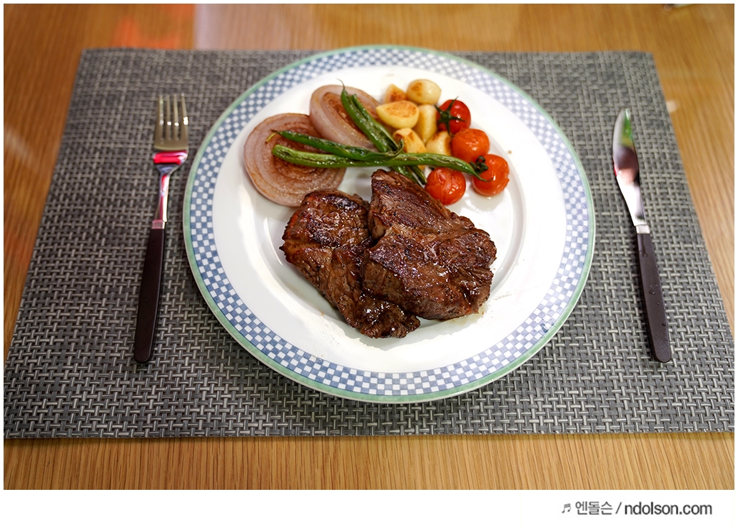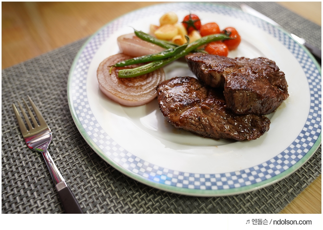 금요일 퇴근 후 저녁식사로 와이프가 스테이크를 해주었더라고요. 잘 안 쓰던 무쇠 주물팬을 사서 스테이크를 해주는 데 집에서도 제대로 된 스테이크를 즐길 수 있더라고요. 무쇠 주물팬이 세로로 길고 큰데, 인덕션은 와이드 존이 있어서 굽기가 가능한 데, 큰 팬이라 스테이크 전체가 고르게 익힐 수 있어서 꼭 필요하더라고요.