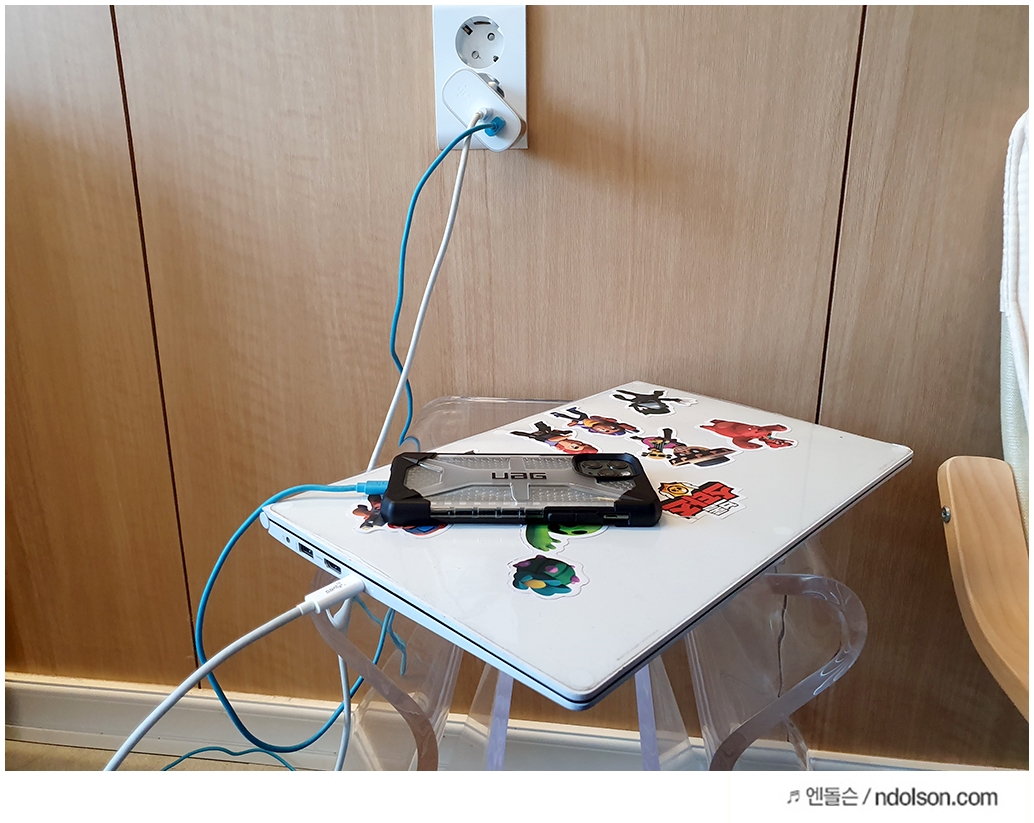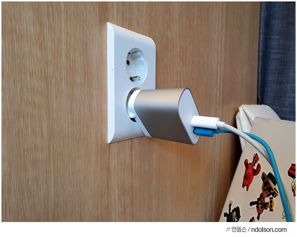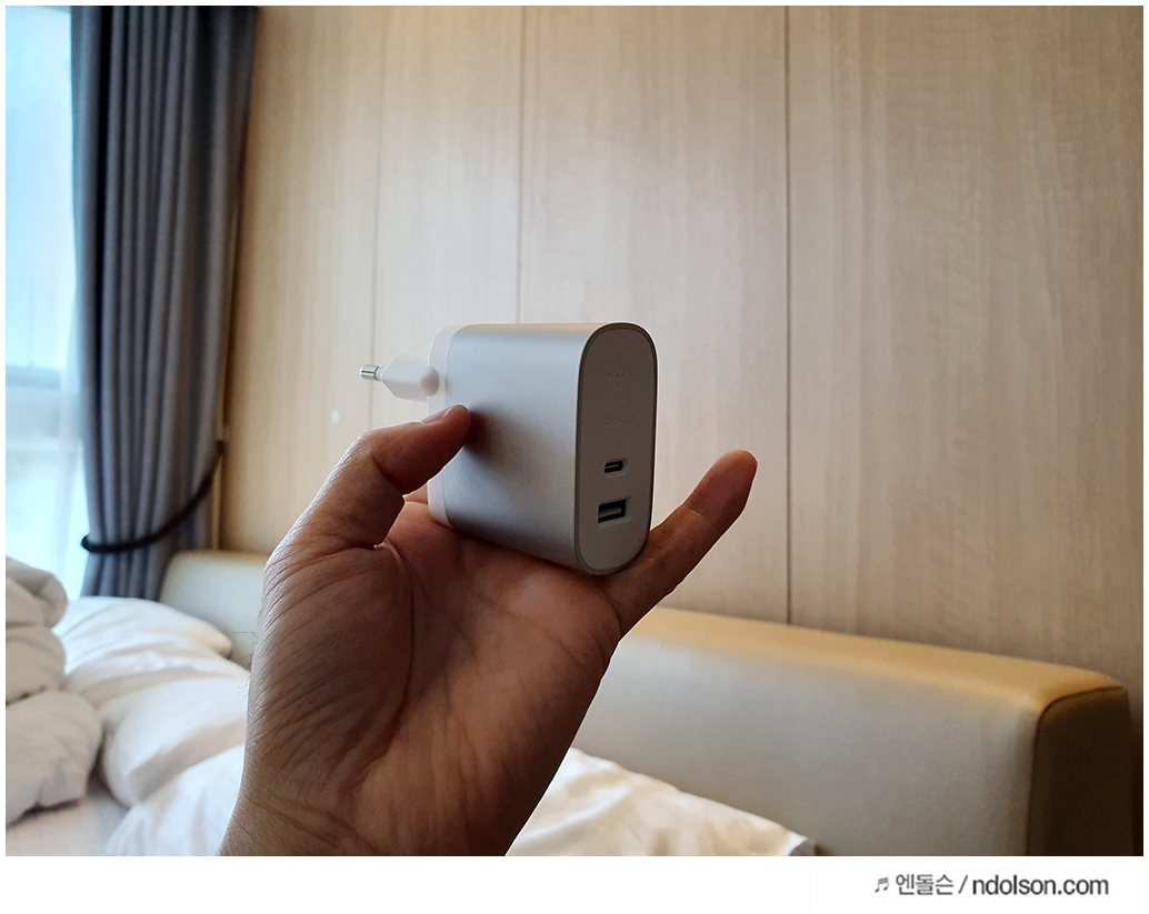 풀빌라 놀러와서 태블릿과 아이폰11 프로를 고속 충전하고 있습니다. 와이프 스마트폰은 금세 충전되니깐 벨킨 고속충전기 25W면 충분합니다. 참고로 와트(W)를 많이 먹는 제품을 다수 사용하다 멀티 고속충전기 때문에 제품에 쇼트(합선)이 생겨서 아이패드와 아마존 패드 등 뭐였더라 5개 정도 날려 먹은 경험이 있어서 최대 지원 와트가 중요하다고 생각합니다. 이 제품은 포트가 2개로 정해져 있고 최대 25W라 충분합니다.