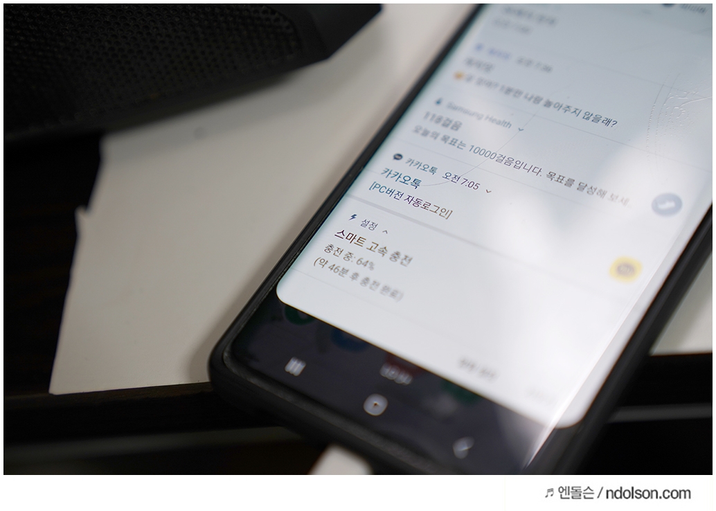 갤럭시S10 5G 스마트폰을 충전해보니, 스마트 고속 충전 상태로 표시됩니다. 빠르게 충전되니 좋습니다.