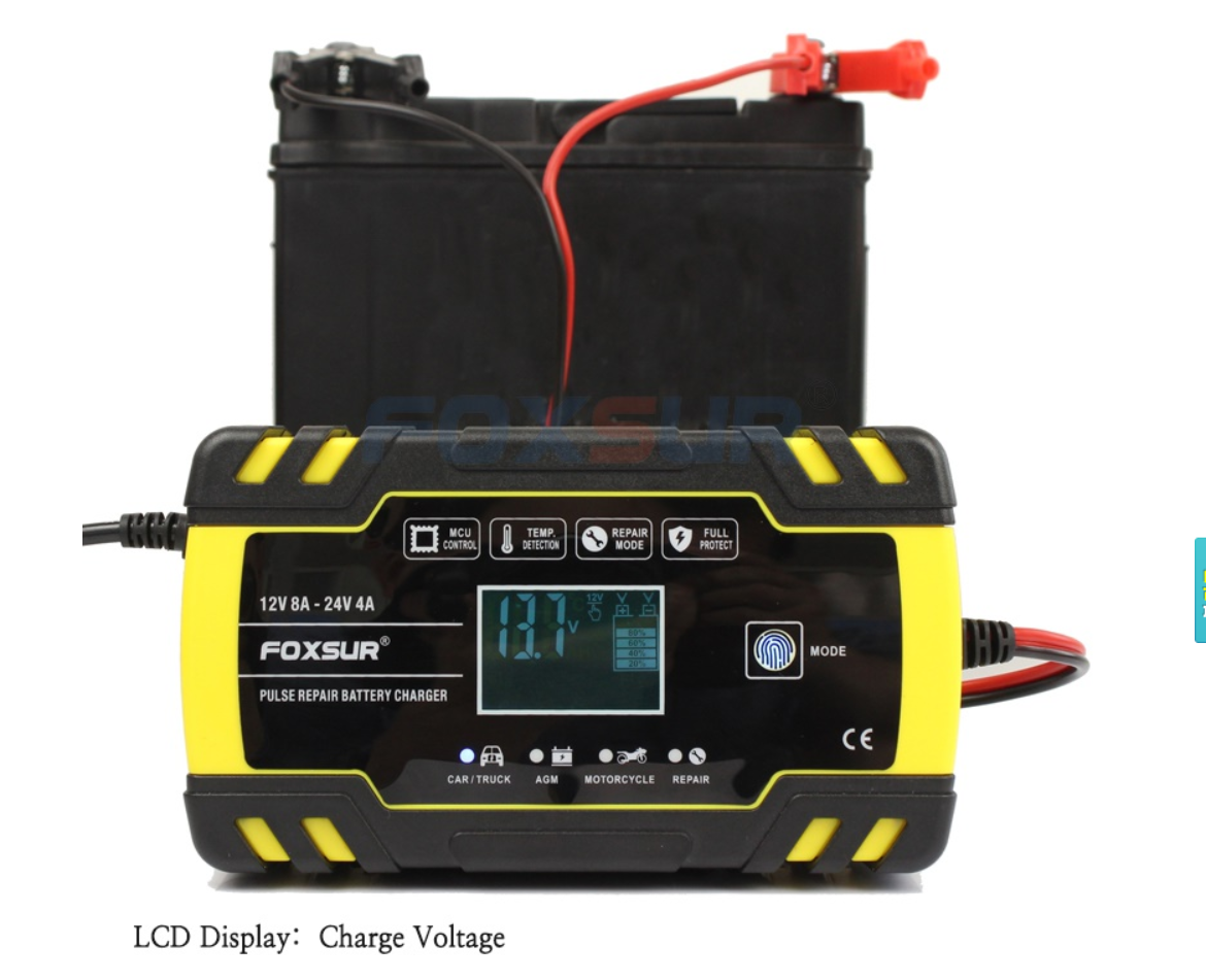 [26,050원]Foxsur 12V8A 24V4A 자동 스마트 배터리 충전기 자동차 오토바이 충전기 펄스 수리 충전기