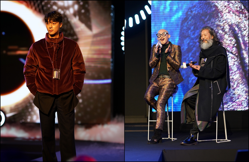 남성모델의 독특한 포퍼먼스와 파워풀한 워킹에 감동적였는데요. 시니어 모델 1호로 불리는 김필두님은 63세의 나이에도 멋진 포스를 뿜뿜하면서 무대가 이어졌습니다. 그리고 디자이너 황재근은 복면가왕의 가면 만드는 것으로 유명한데, 벨기에 앤트워프왕립예술학교에서 교육을 받은 수재입니다. 스타일링 노하우까지 알려주는 섬세함에 더욱 알찬 무대가 되었습니다.