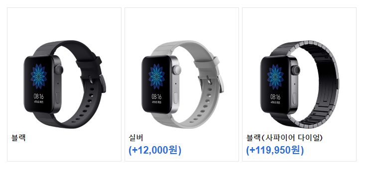 샤오미 미워치의 색상과 종류는 블랙, 실버, 블랙(사파이어 다이얼)로 구성되어 있습니다.
