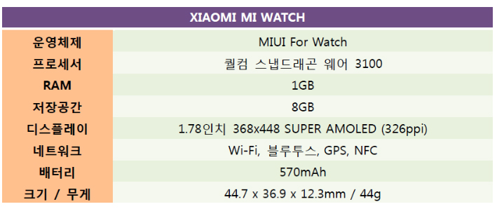 샤오미 미워치의 스펙은 놀랍긴합니다. 다소 아쉬운 건 배터리 사용시간이 생각보다 아쉽습니다.