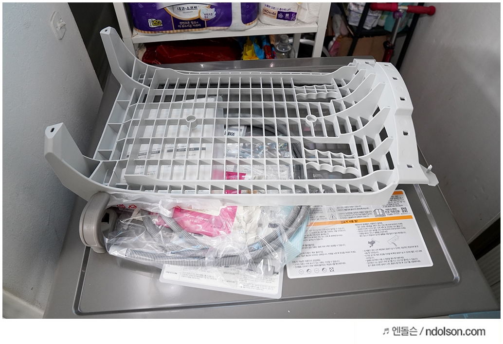 설치가 정말 간편하게 끝났어요! 통돌이 세탁기랑 미니 드럼이 있어서 어떻게 설치할까 걱정했는데, LG설치 기사님이 사용하기 편하게 설치해 주셨네요. 배수관을 설치하지 않고도 쓸 수 있어서 원하면 거실에 설치할 수도 있지만, 짐이 많아서 베란다가 편하네요.