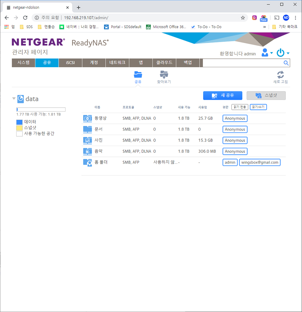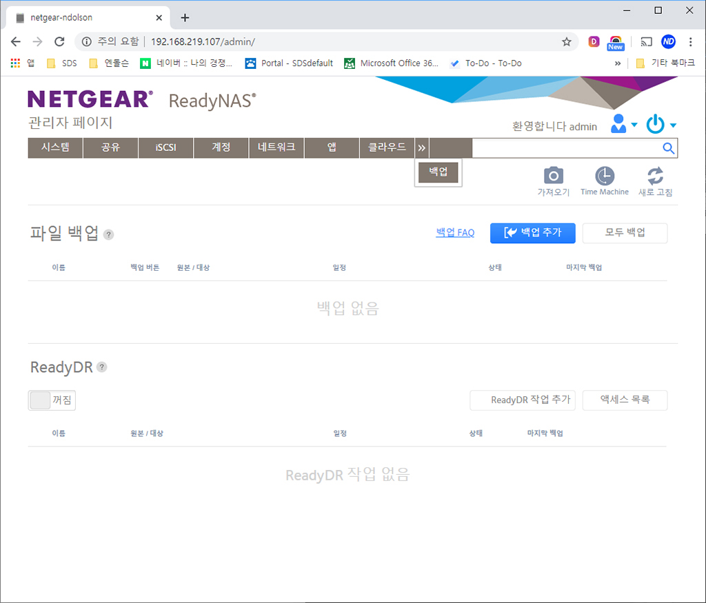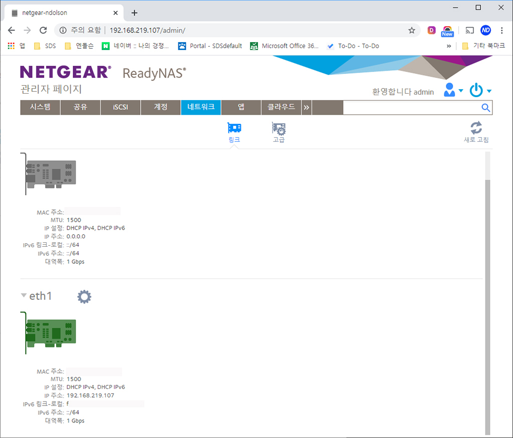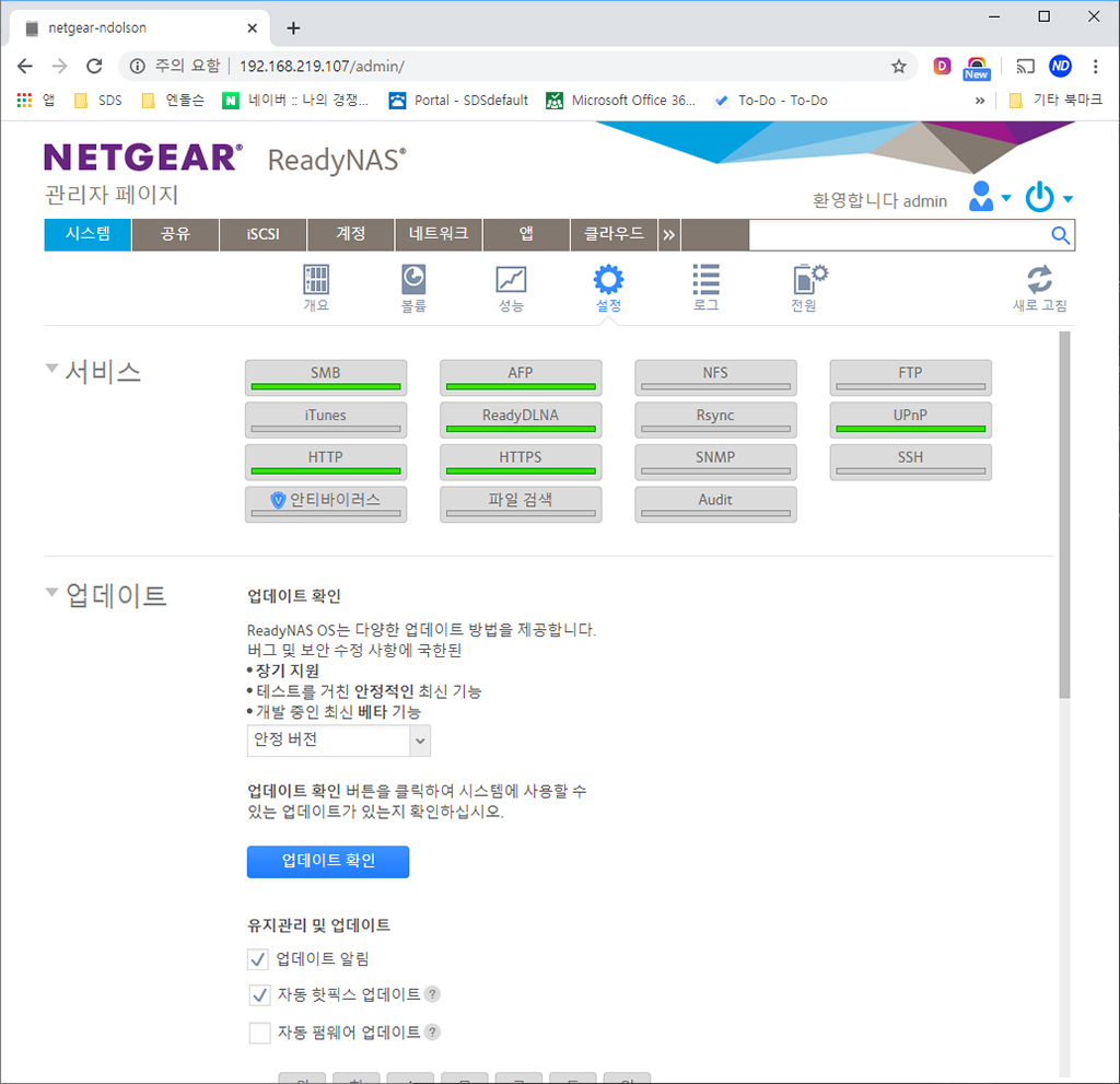 넷기어 NAS 관리자 페이지 설정