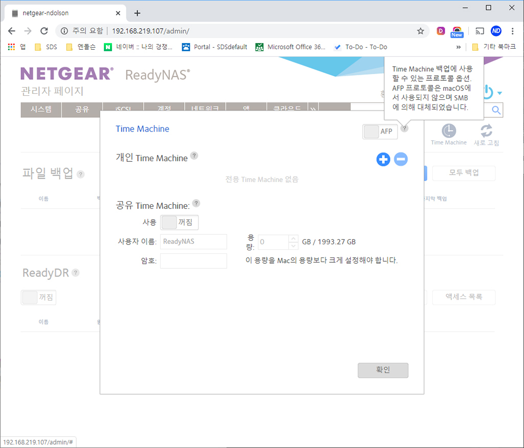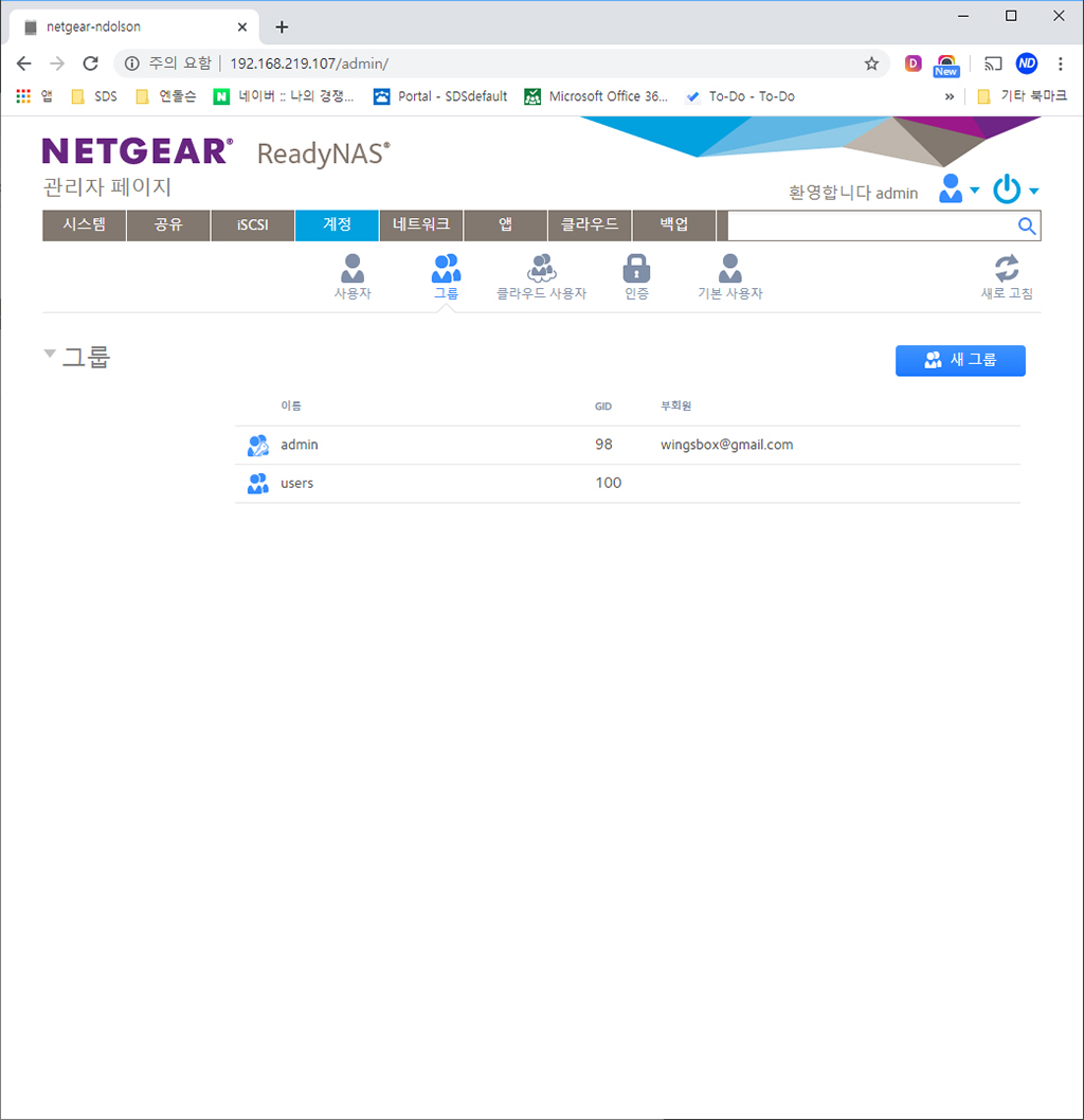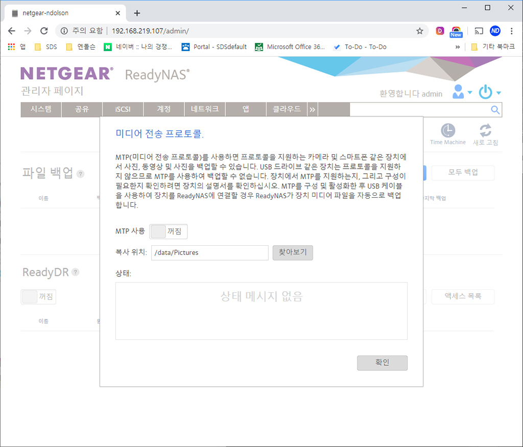 넷기어 NAS 관리자 페이지 설정