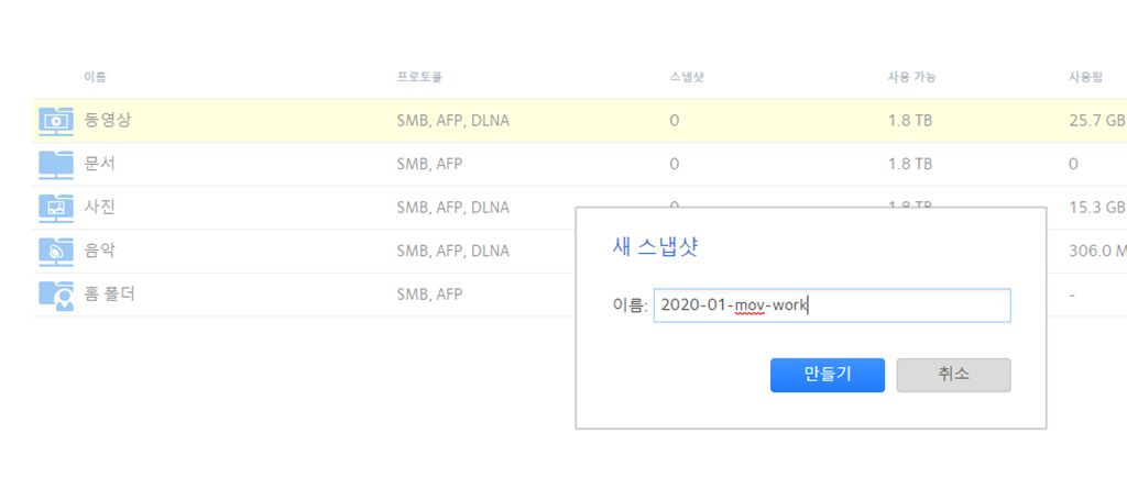 NAS에서 스냅샷을 만들려면 수동으로 만들거나 자동으로 만들게 할 수 있습니다. 수시로 백업하는 게 더 안전하며, 실제 스냅샷 생성은 몇 초도 걸리지 않고 빠르게 진행됩니다.