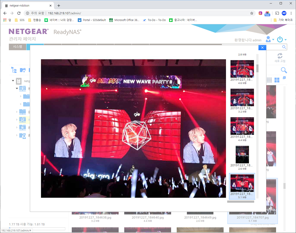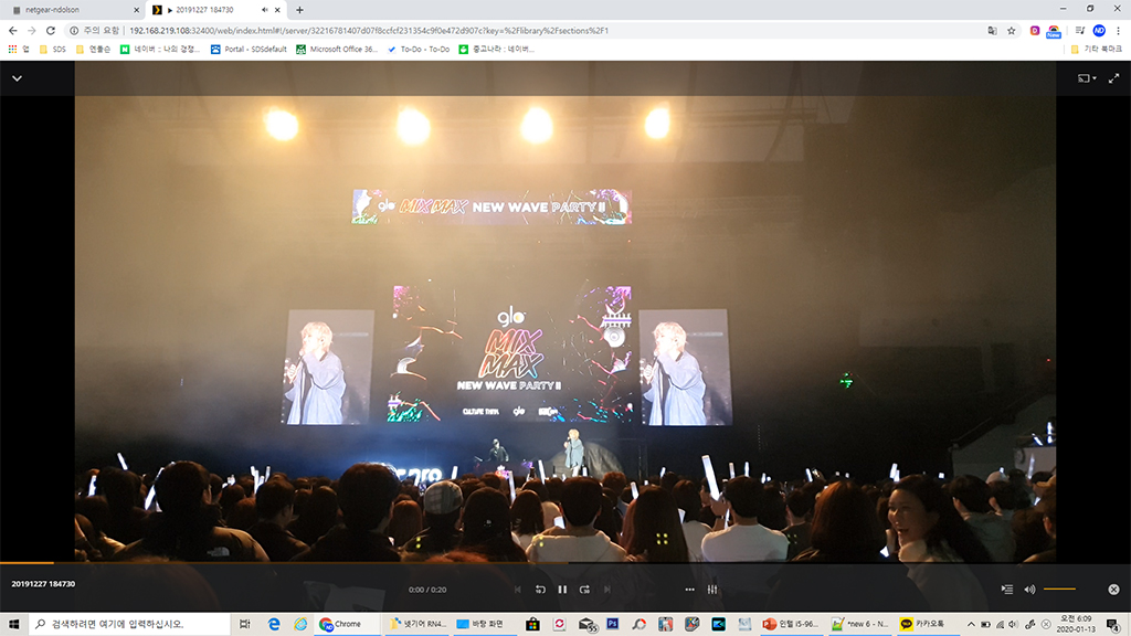 아이패드, 스마트폰, 노트북, TV 등 다양한 디바이스에서 손쉽게 NAS의 영상을 스트리밍 하여 볼 수 있습니다. 19년 12월 마지막에 힙합 콘서트에서 촬영된 영상인데, 별도의 인코딩 없이 NAS에서 잘 재생됩니다. 웹 재생이 가능해서 노트북에서는 별도의 플레이어 설치도 필요 없습니다. 또 외부/내부에서 ReadyCloud 접속이나 내부 IP로도 접속하여 재생이 가능합니다.