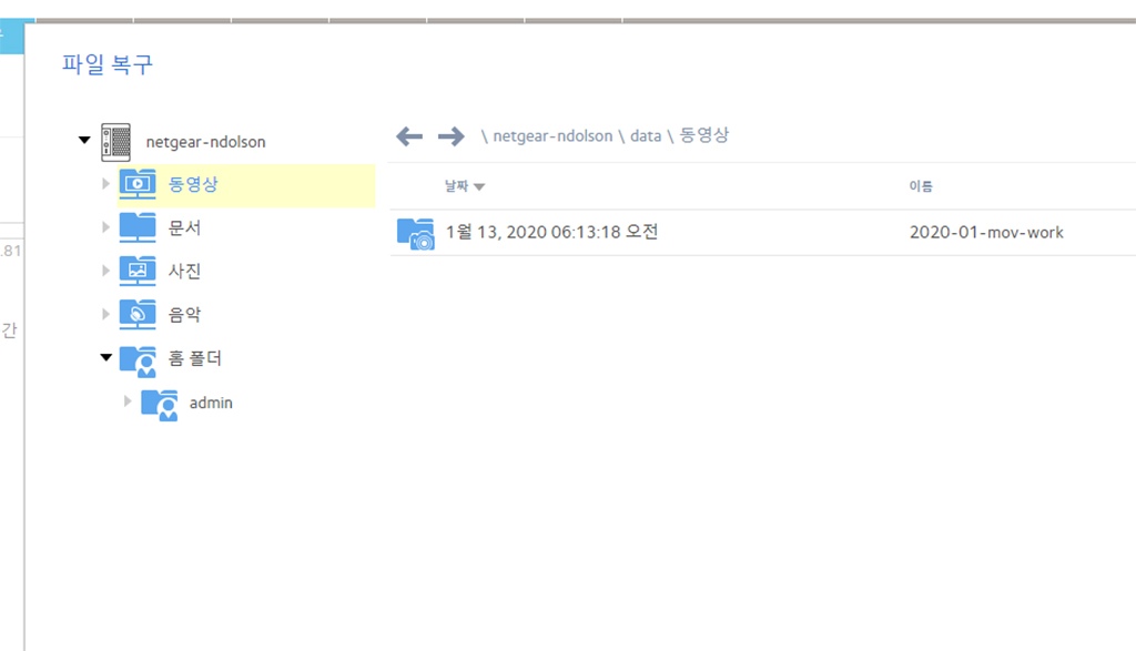 넷기어 NAS의 로그인 정보를 입력하면, 넷기어에 등록된 NAS 장치가 보입니다. 동기화할 폴더를 설정하면 됩니다.