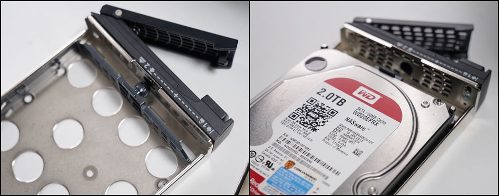 다수의 NAS용 하드디스크부터 하드디스크를 장착할 수 있었는데요. 장착은 손쉬운 스롯형으로 된 구조로 스토리지 교체가 간편했습니다. 추후 2+2 백업 구성시 유지보수 교체 작업이 편합니다.