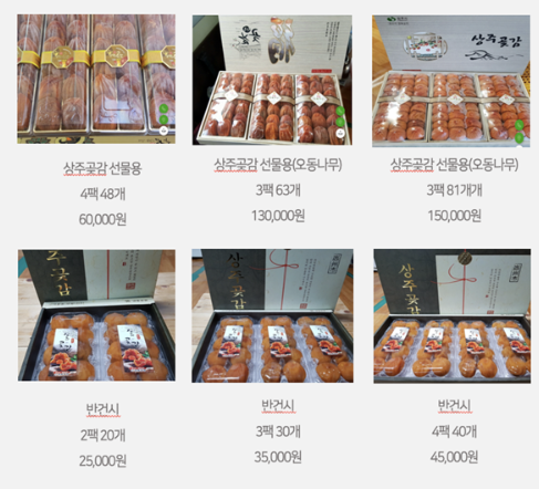 경상북도 상주시 남장동 419 곶감 농장에 선물용 세트가 25,000원부터 150,000원까지 다양하게 있어요. 반건시랑 곶감까지 입맛대로 고를 수 있습니다.