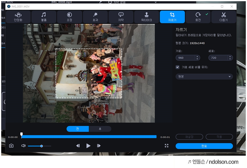 요즘 영상 편집할 때 2개 이상의 카메라로 촬영하는 게 좋지만, 그렇지 못할 경우 원본 영상의 특정 부분을 줌인하여 영상의 지루함을 없애기도 합니다. 자르고 회전하고 애니메이션을 넣는 작업도 쉽고 빠르게 적용할 수 있어서 좋습니다.