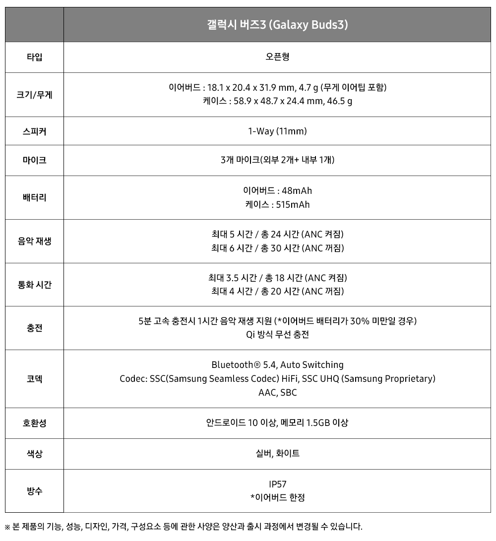갤럭시 버즈3 시리즈는 ‘갤럭시 버즈3 프로’와 ‘갤럭시 버즈3’ 두 가지로 출시되며, 각각 커널형과 오픈형 디자인을 채택해 사용자 선택의 폭을 넓혔습니다.