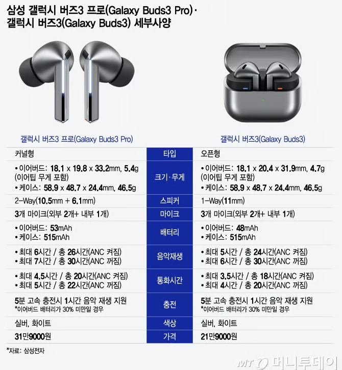 - 갤럭시 버즈3 프로: 31만 9,000원