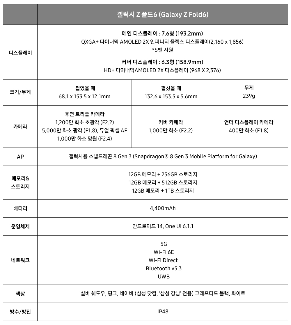 삼성 갤럭시 신제품언팩 갤럭시 Z 폴드6, 플립6, 갤럭시 버즈3 시리즈 전격 공개, 스펙 가격