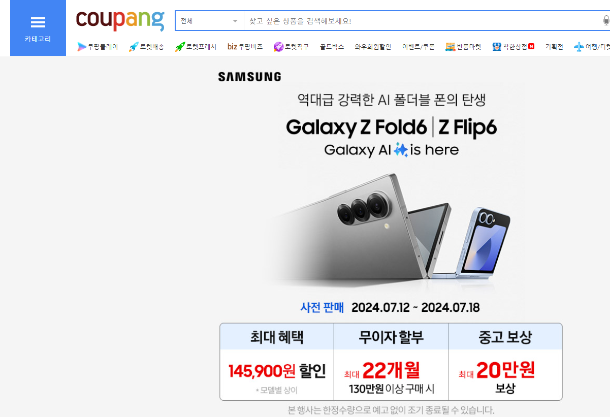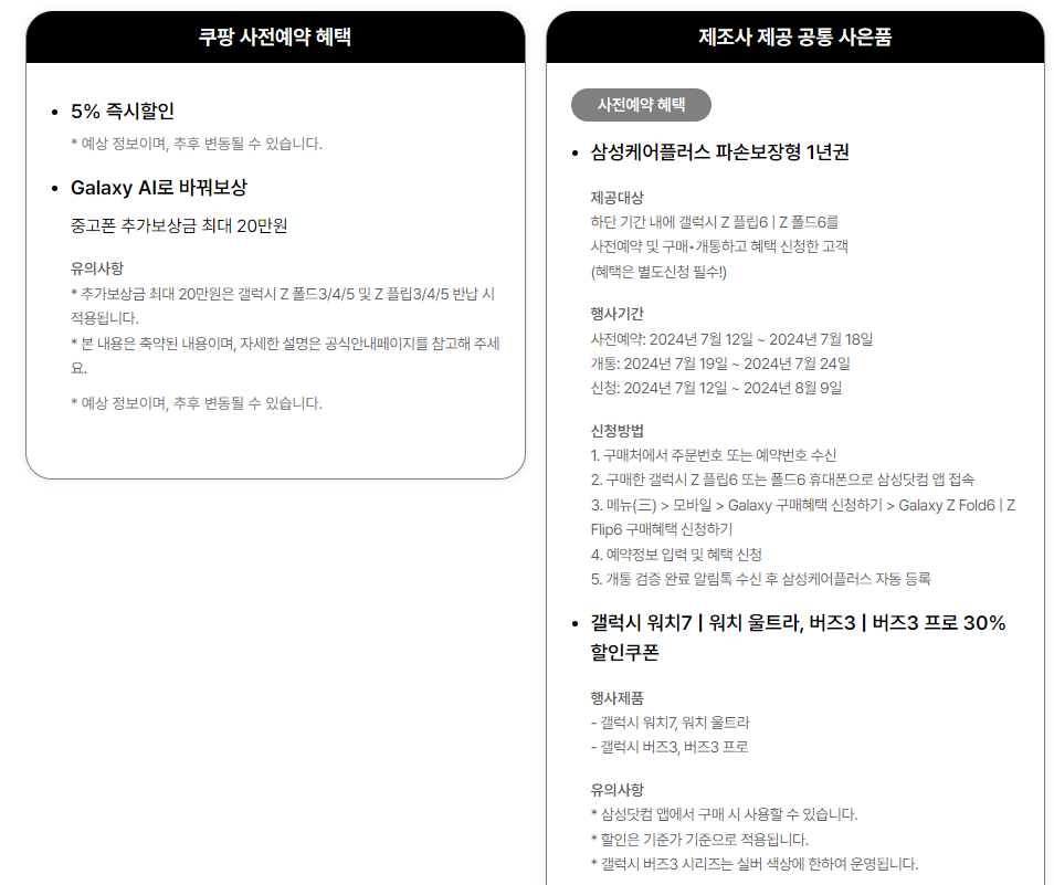 갤럭시 Z 폴드6 플립6 남들보다 빠르게 쿠팡, 지마켓, 11번가 사전예약