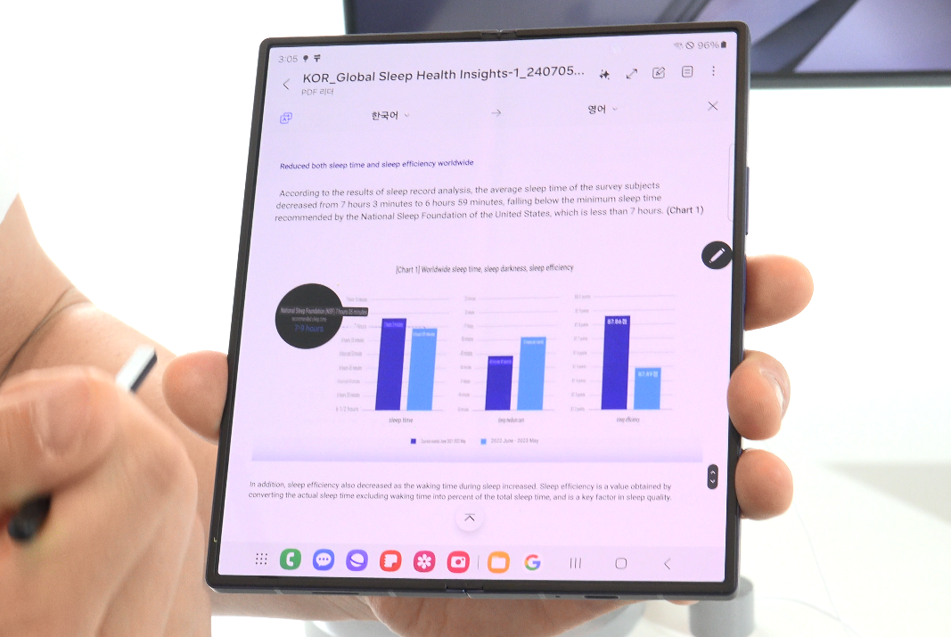갤럭시 Z 폴드6에는 다양한 AI 기능이 포함되어 있습니다. 번역 기능, 채팅 어시스트, 서클 투 터치, 포토 어시스트 등 실생활에 유용한 기능들이 많습니다. 예를 들어, 스케치 변환 기능은 S펜으로 대충 그린 스케치를 AI가 퀄리티 높은 이미지로 완성해 줍니다.