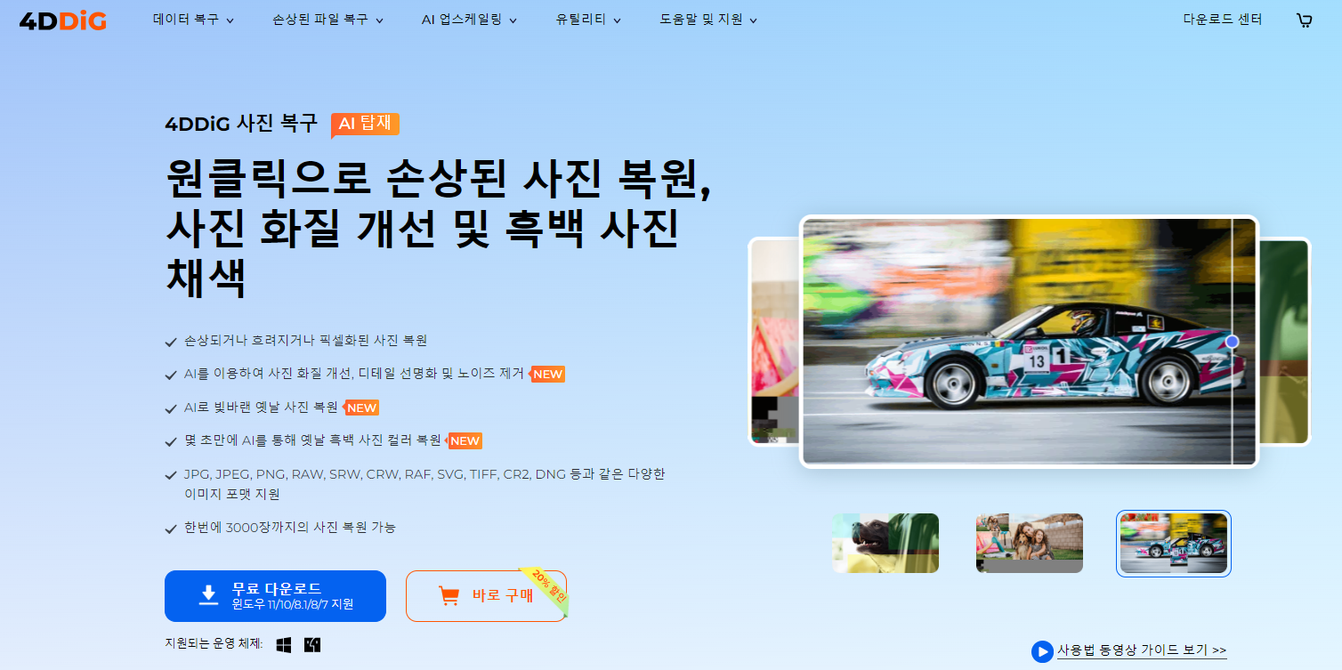 [공식] Tenorshare 4DDiG 사진 복구: 손상된 사진 복구, 화질 개선 및 컬러 복원