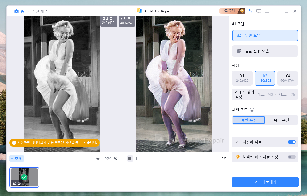 흑백 사진 컬러로 복원! 4DDiG File Repair로 사진 해상도 높이기