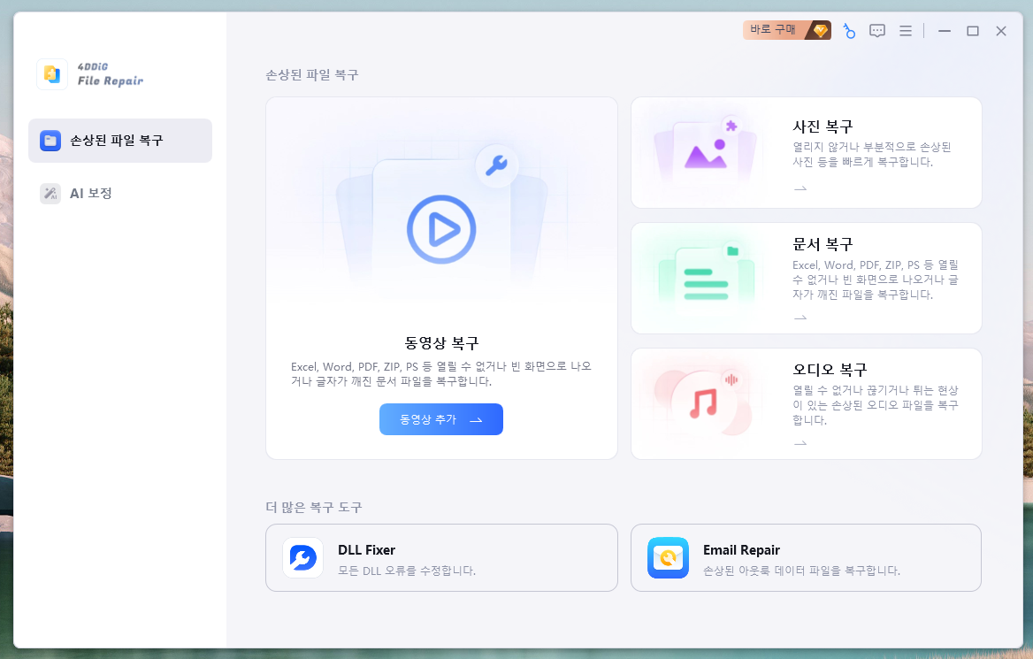 4DDiG File Repair는 여러 가지 기능들을 지원합니다. 그 중 몇 가지 주요 기능을 살펴보겠습니다.