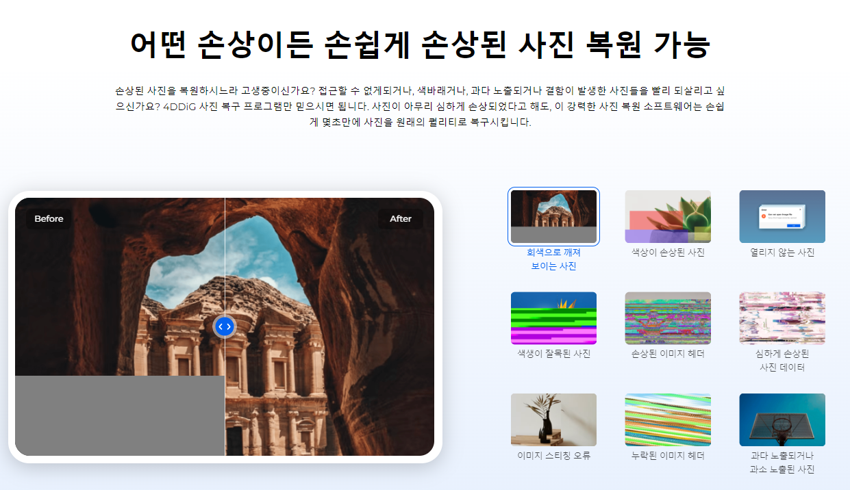 [공식] Tenorshare 4DDiG 사진 복구: 손상된 사진 복구, 화질 개선 및 컬러 복원