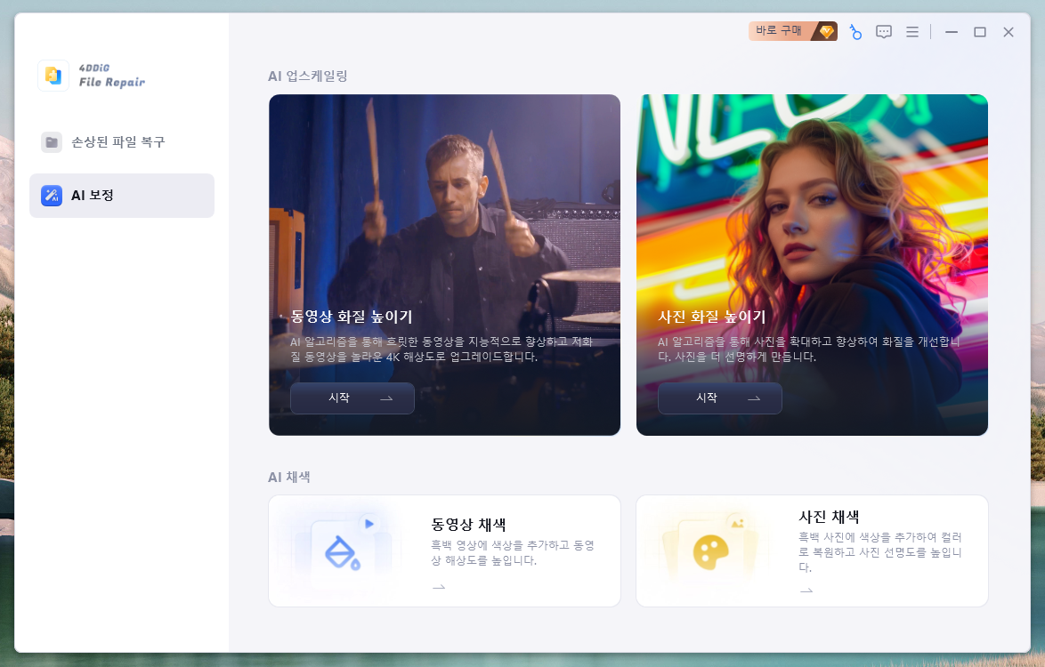 흑백사진 복원 및 동영상 업스케일링 프로그램 4DDiG File Repair의 주요 기능