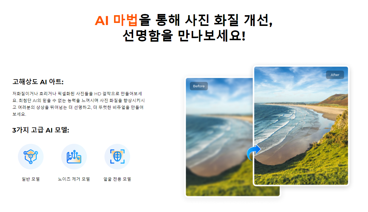 잊지 못할 소중한 추억의 사진과 동영상을 복원하고 중요한 업무 자료를 고퀄리티로 변환할 수 있습니다. 여러분도 이 프로그램을 통해 소중한 자료들을 새롭게 업스케일링해 보세요!
