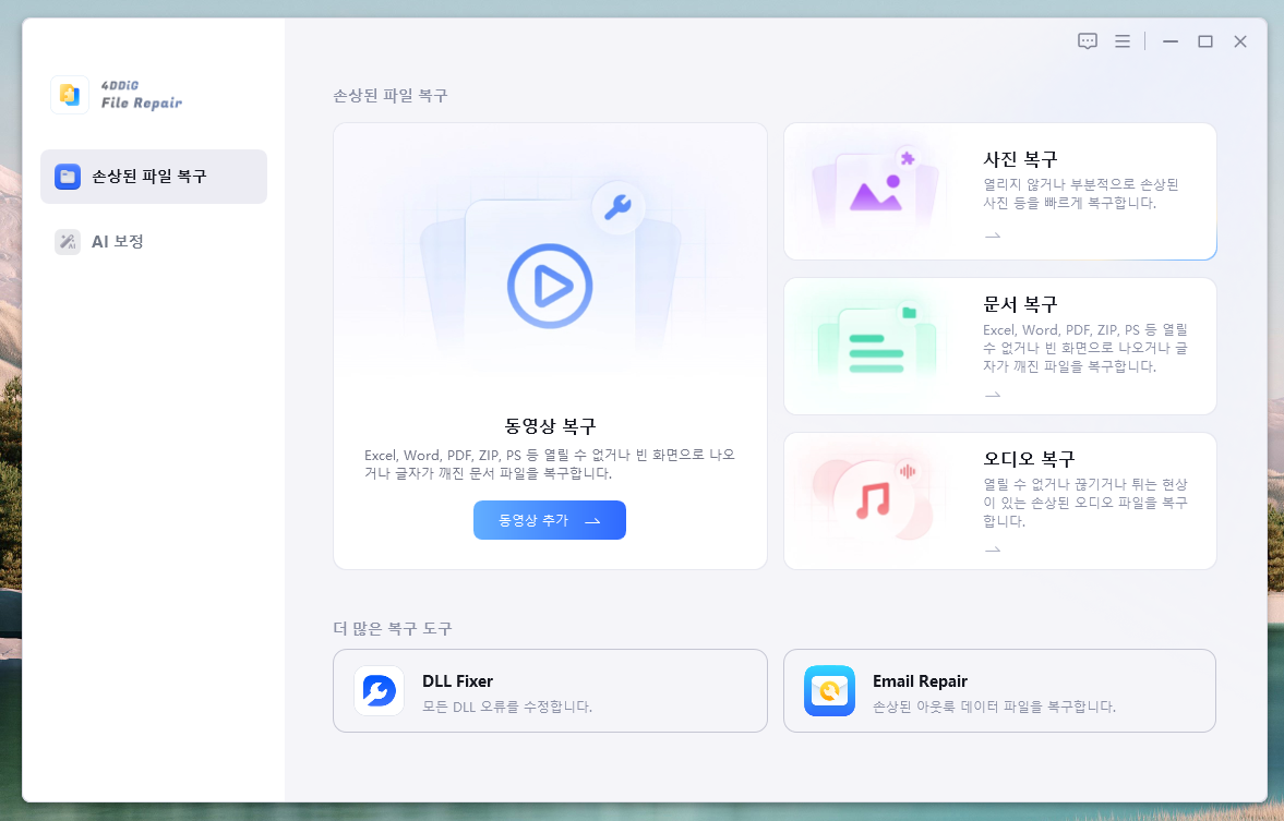 4DDiG File Repair는 여러 가지 기능들을 지원합니다. 그 중 몇 가지 주요 기능을 살펴보겠습니다.