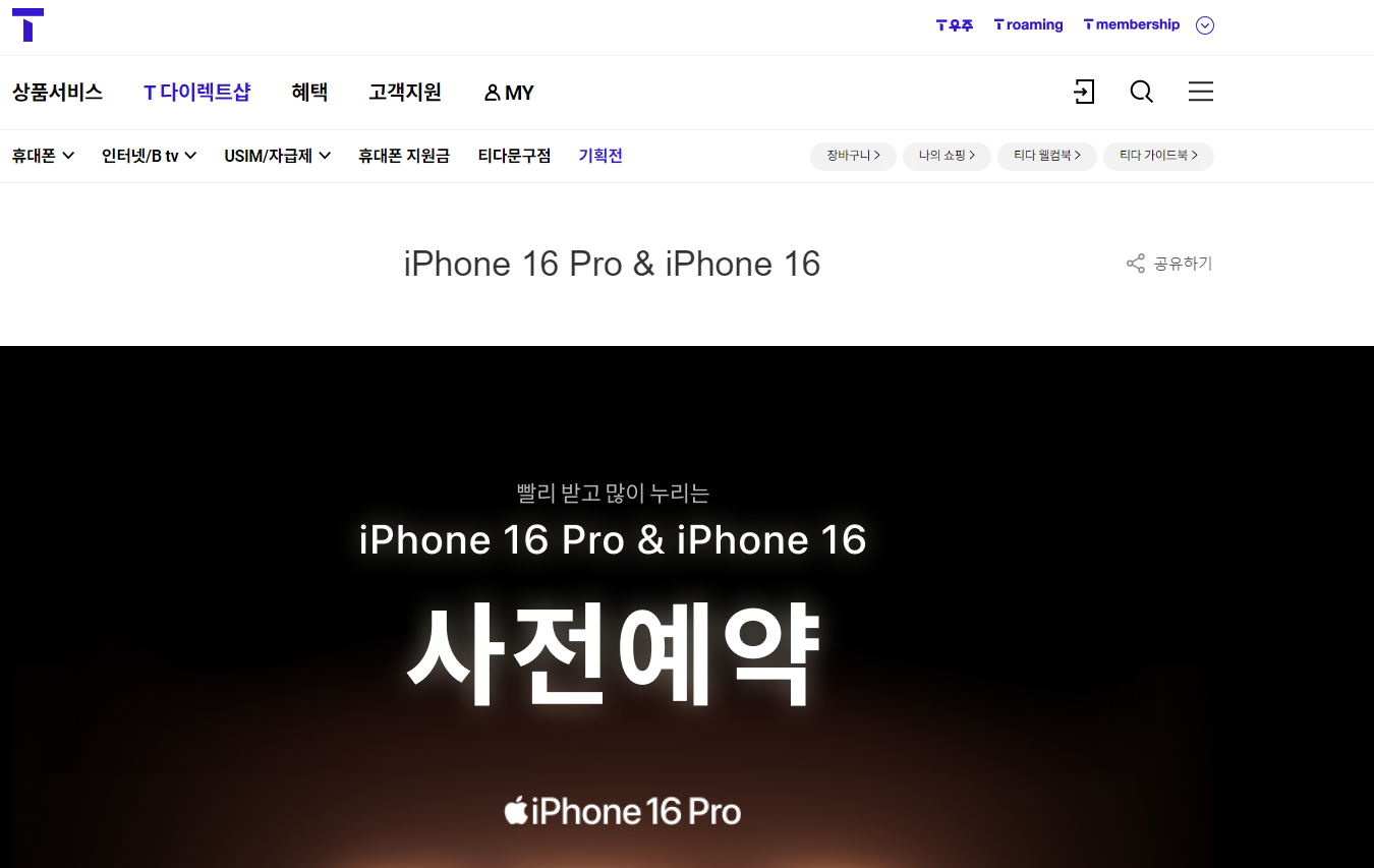 아이폰16 프로, 플러스 가격 그리고 통신사 SKT, KT, 유플러스 사전예약 혜택